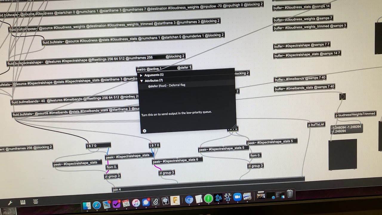fluid.bufstats~ @source #0loudness @stats #0loudness_stats @numchans 1 @startchan 0 @numderivs 1 @blocking 2
